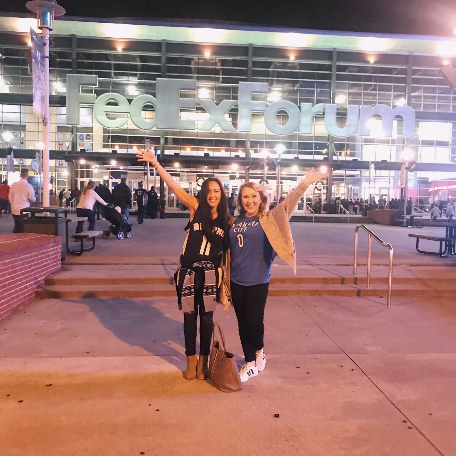 I had so much fun visiting Jayde this weekend in Memphis! We went to The Arcade for breakfast on Saturday (Oldest restaurant in Memphis!). They had the best blood mary and french toast–like he best I’ve had! I have not gotten to spend time with Jayde since we were at her Bachelorette Party over a year ago!!!! Way too long. We also went to a Gizzlies game (and I wore my OKC Thunder shirt-picture below).